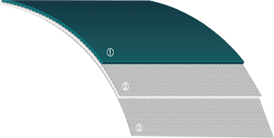 Nedre yta Den nedre strukturen dikterar bältesbrusnivå, hållbar och anpassningsförmåga för bältesstödplattor/rullar med olika skiktmaterial/tjocklekar/pattens till bältets anpassningsförmåga på vissa använda. | |