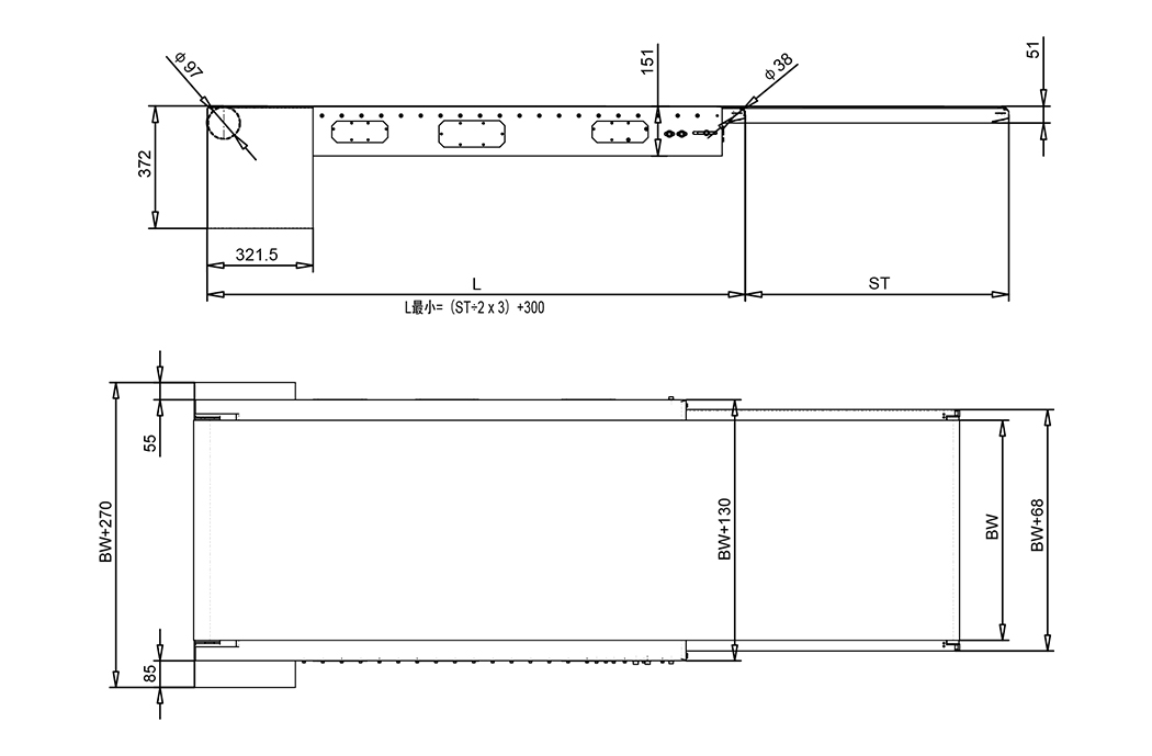 Den faktiska dimensionen av bältet är minskad 5 mm än ovanstående standardbälte; LF Maskinens längd överstiger 4 m smal 10 mm.