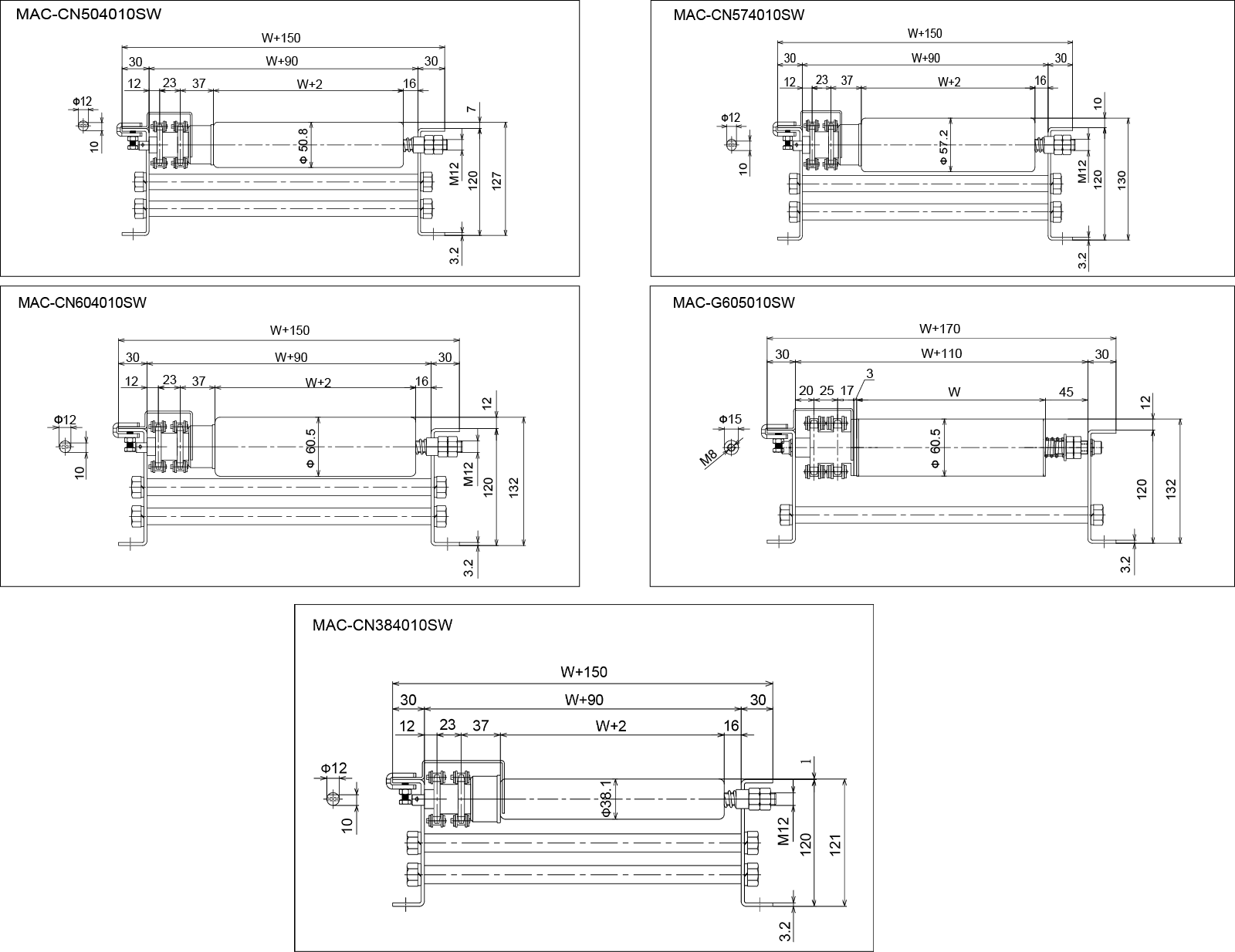 | Typ | MAC-CN384010SW | MAC-CN504010SW | MAC-CN574010SW | MAC-CN604010SW | MAC-G605010SW |