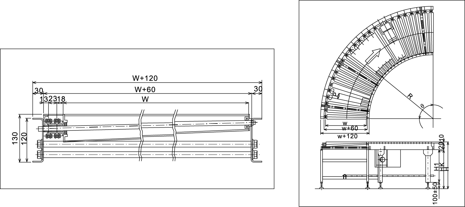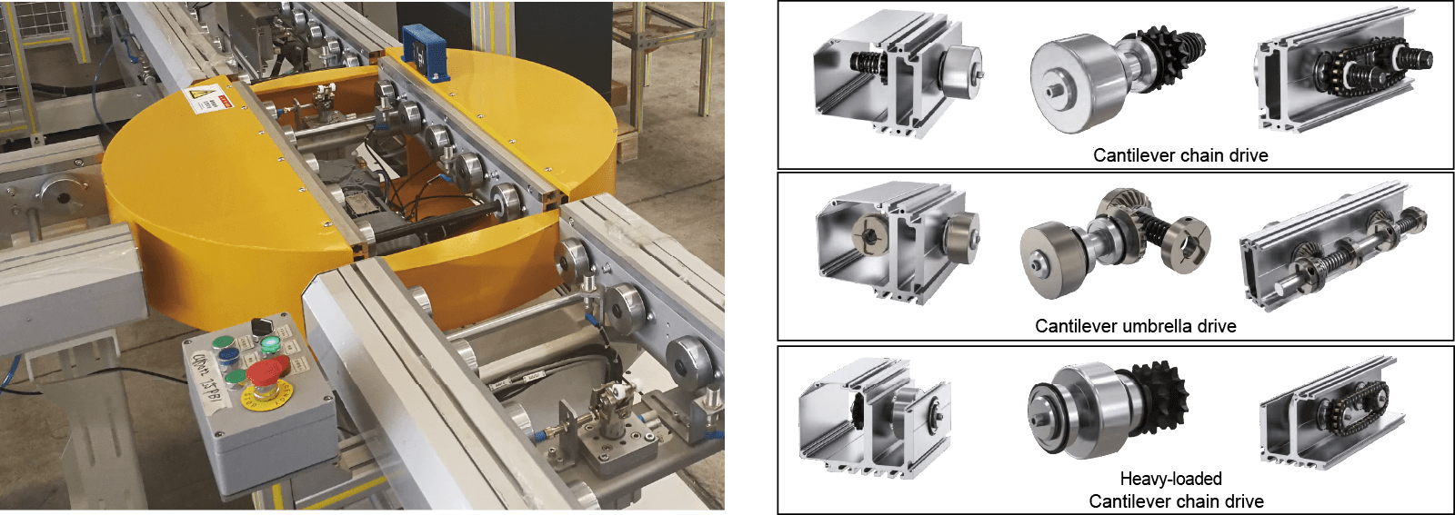 Jämfört med den drivna rulltransportörskedjan. kännetecknas av deras smidiga drift, lågt brus; Ekonomi är tillämplig, kostnadseffektiv; Lämplig för inomhusmiljöer.