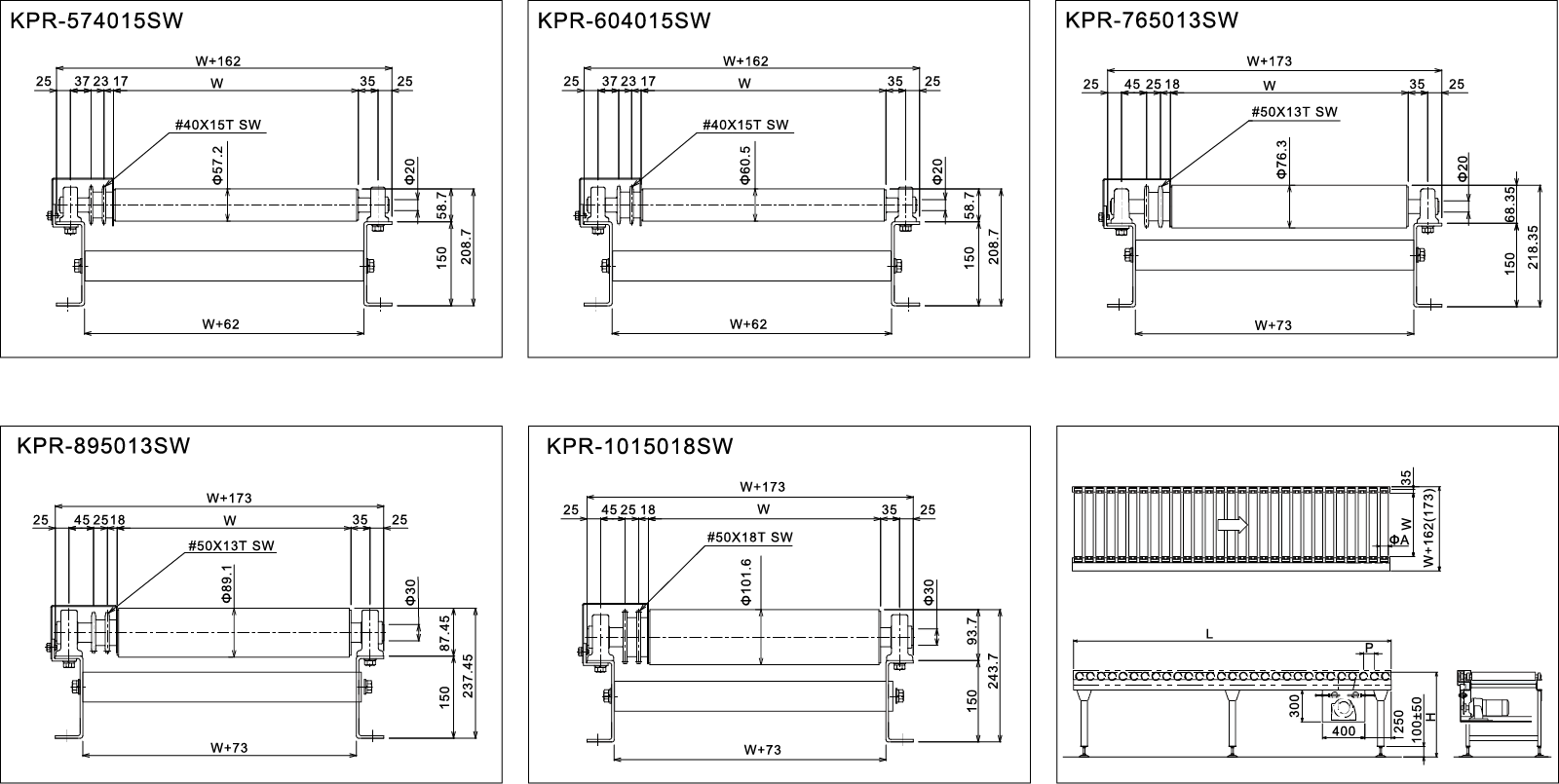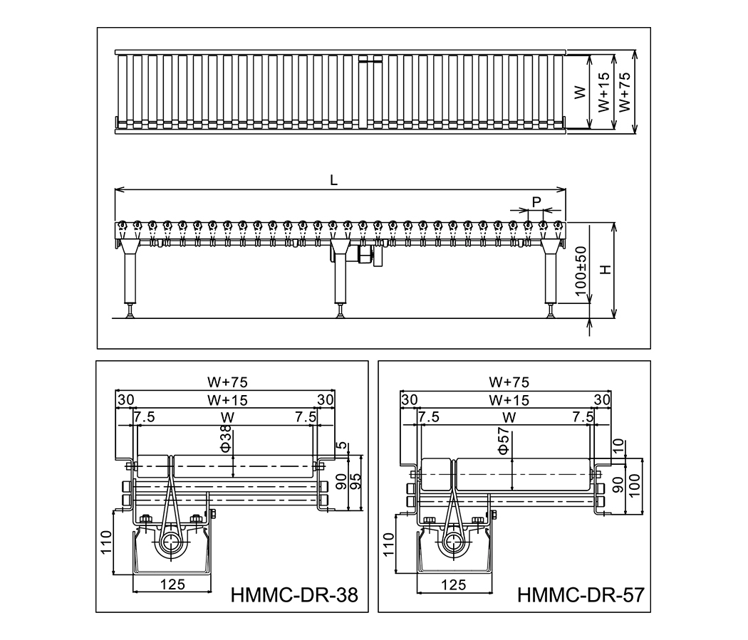 | Rullhöjd p | 50、75、100、150 | 75、100、150 | 75、100、150 | 75、100、150 | 75、100、150 |