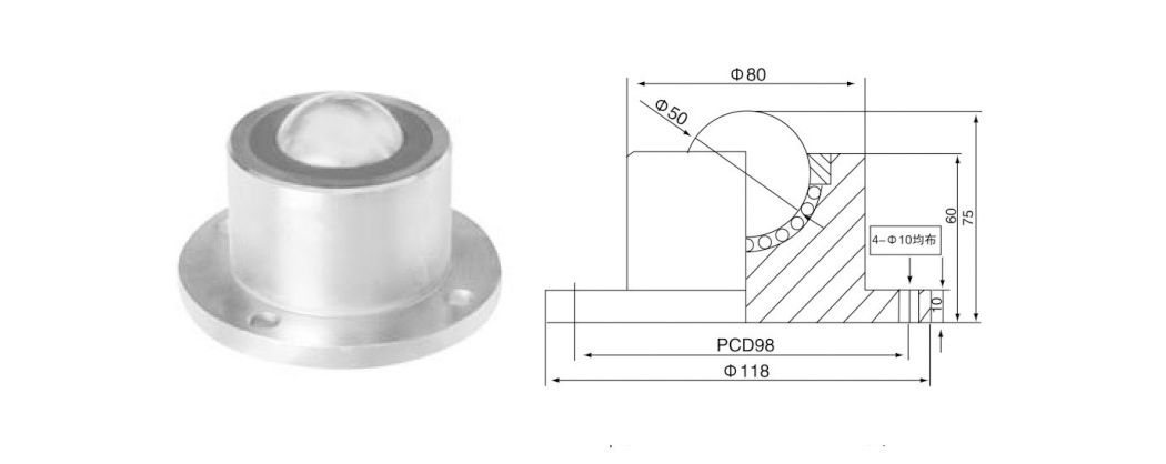 Det är lämpligt för användning utan 360 grader av fri rotation, eller när kontrollriktningen är osäker, utöver friktionskoefficienten är liten men kan uppnå långsiktiga rörelseegenskaper.