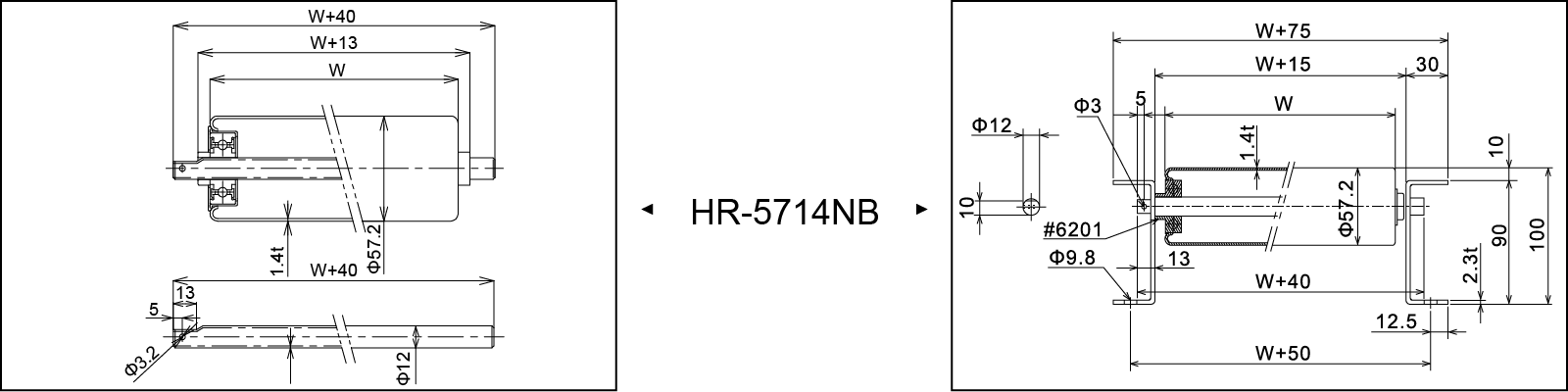 | Rullbredd W (mm) | 100 | 200 | 300 | 400 | 500 | 600 | 700 | |