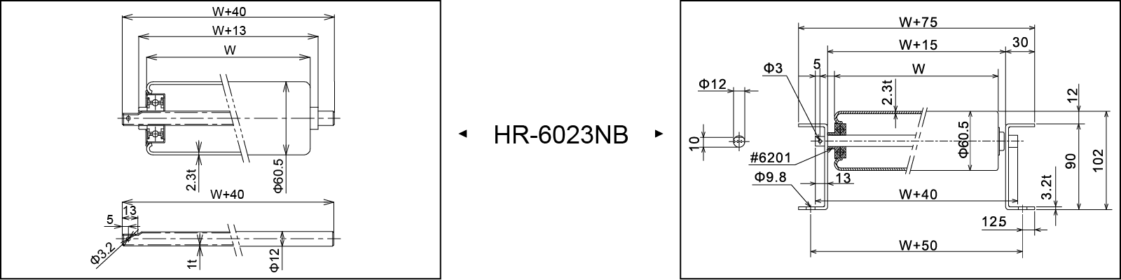 | Rullbredd W (mm) | 100 | 200 | 300 | 400 | 500 | |