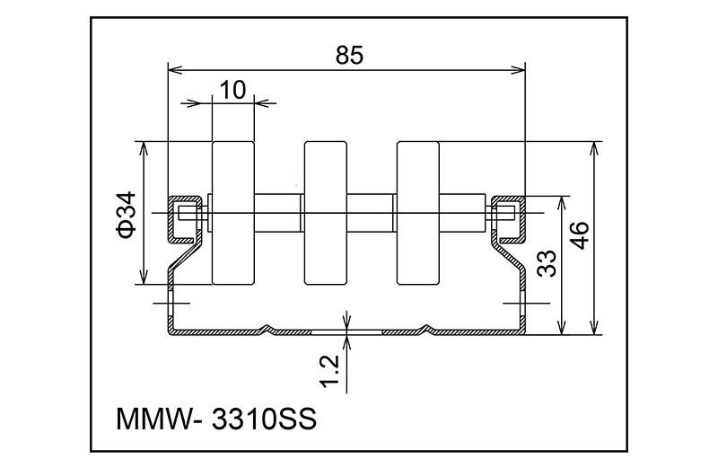 | MMW-3310SS | 33 × 10 × 5 × 21,5 (68) | 5 × 82L | 33 × 85 × 1,2 | 46 | 1000 · 2000 · 3000 | 25 förskjuten typ | 10 | Elektro galvaniserad | PE |