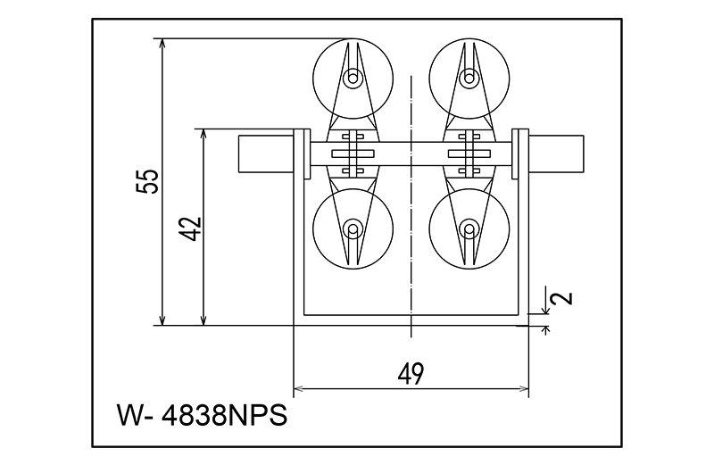 | W-3825NPS | 38 × 25 × 3,8 | 3,8 × 40L | 33 × 44 × 1,0 | 44 | 1000 · 2000 · 3000 | 45 | 20 | Elektro galvaniserad | ABS PE |