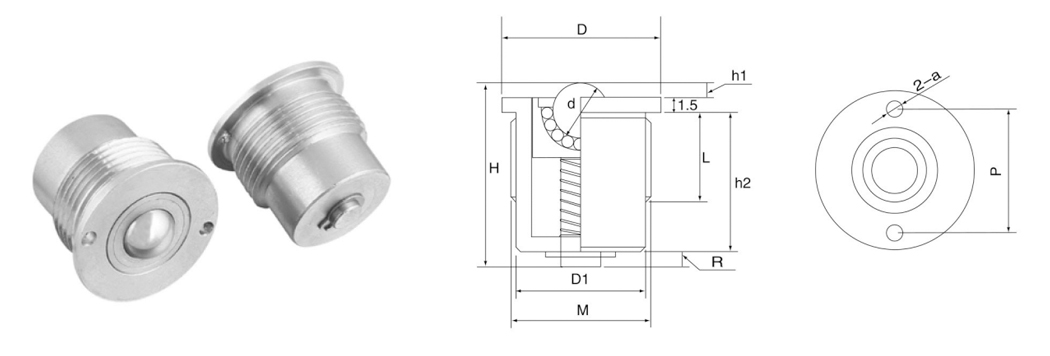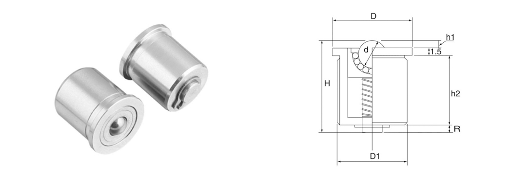 | d | D | D1 | H | h1 | h2 | R | ||||